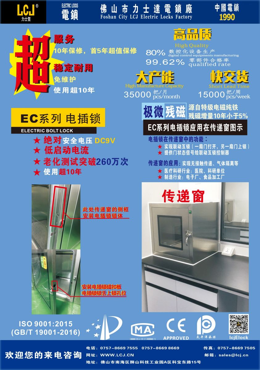 产品应用分享:EC系列电插锁,应用于传递窗及医疗、净化行业,与您共同抗疫!260万次老化测试,超稳定耐用!
