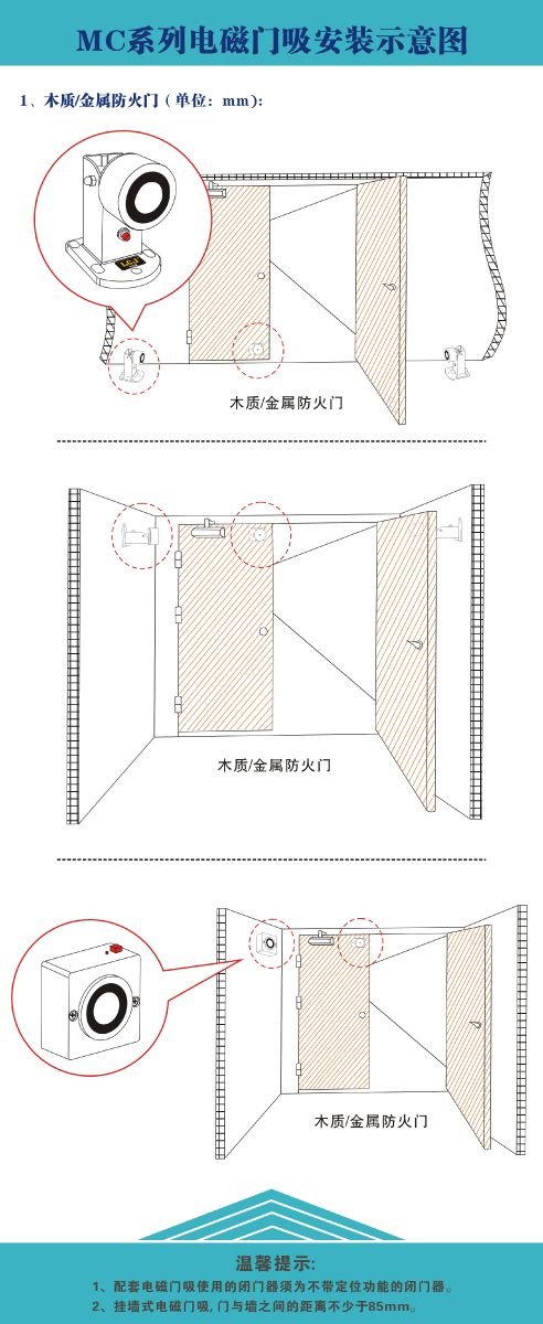 电磁门吸配套消防联运控制系统、消防输入/输出模块、防火门监视器,广泛应用于各类智能大厦、综合大楼的防火门、防烟门、消防门,橱窗门等。