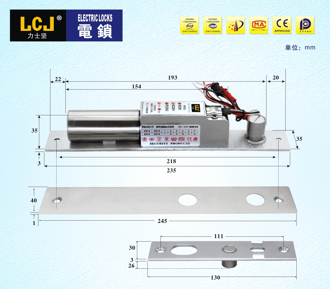 EC电插锁是按照《电插锁》标准自主设计开发,拥有实用新型、外观等专利。